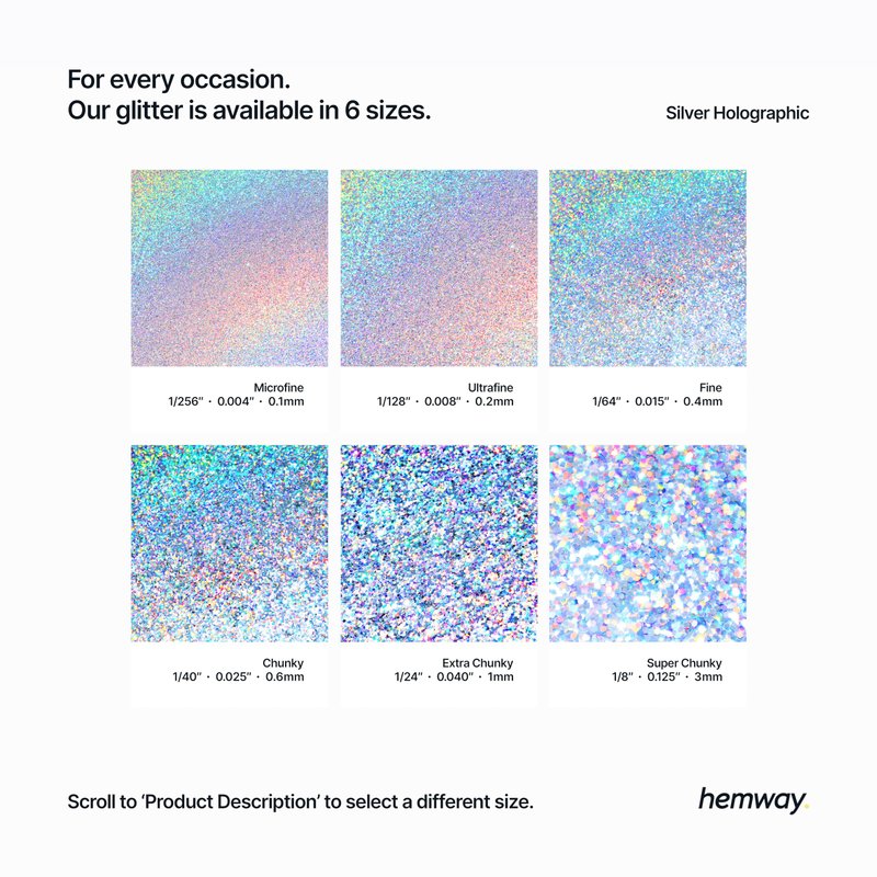 - Cosmetic Graded - Hemway glitter is safe for use in makeup looks, nail art, body art, hair and lip gloss