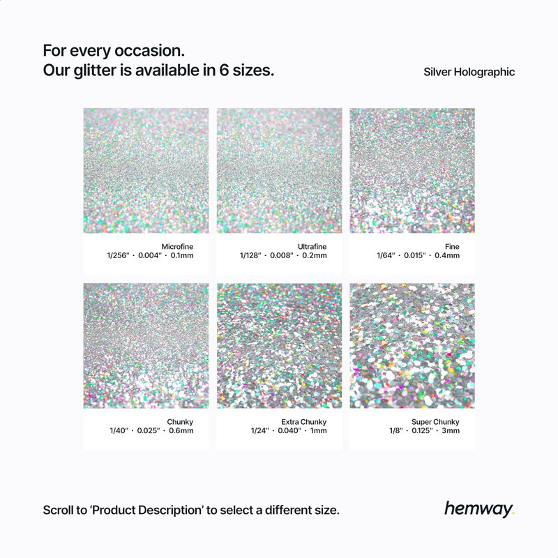 Hemway has such a wide range of colors and sizes to choose from. The vibrant, fade resistant super shiny glitter will give a long-lasting sparkle to any craft. Its cosmetic graded and non-toxic properties make it a must have for nail and body art too! Hemway’s holographic colors will reflect all colors of the rainbow creating a truly beautiful effect.