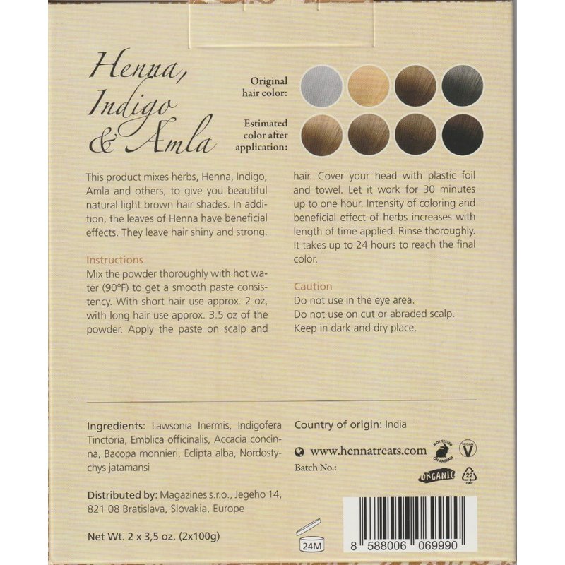 Henna, Indigo & Amla Powder - Light Brown Hair Dye - Fresh & Pure Organic - 7oz - Indian Natural Hair Care