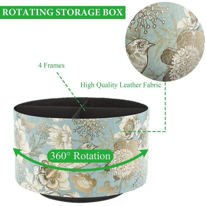 Hennaja Round Leather Art Supply Organizer,Remote Control Holder,360 Degree Rotating,Multi-Functional Pencil Holder,4 Compartments Desktop Stationary Organizer(1-Blue Bird)