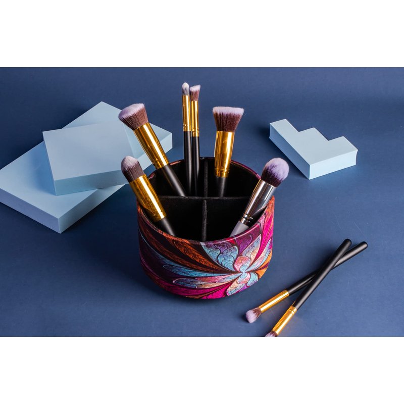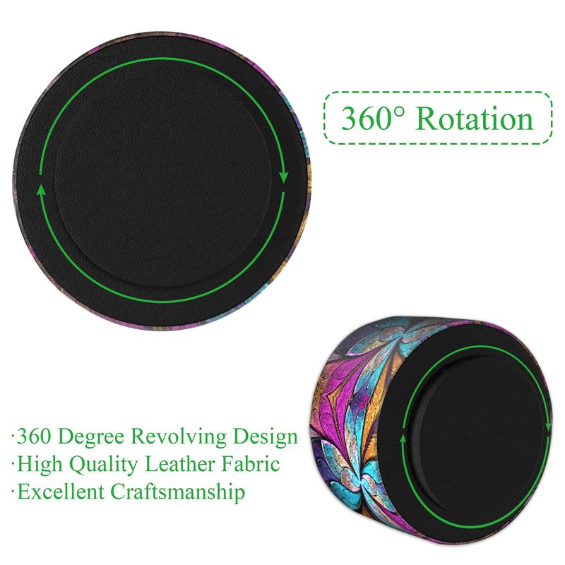 Hennaja Round Leather Art Supply Organizer,Remote Control Holder,360 Degree Rotating,Multi-Functional Pencil Holder,4 Compartments Desktop Stationary Organizer(1-Fractal Flower)