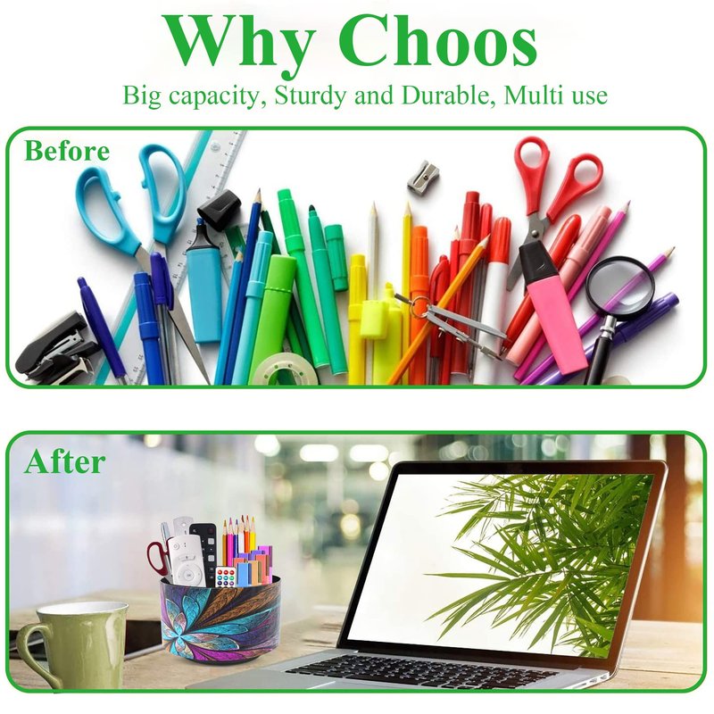 - ✎360° Revolving Design: You can freely rotate the pen holder steadily left and right,unique spinning base design allows easy access to items from any directions.The non-slip pads on the bottom keep it stay in place when rotating.