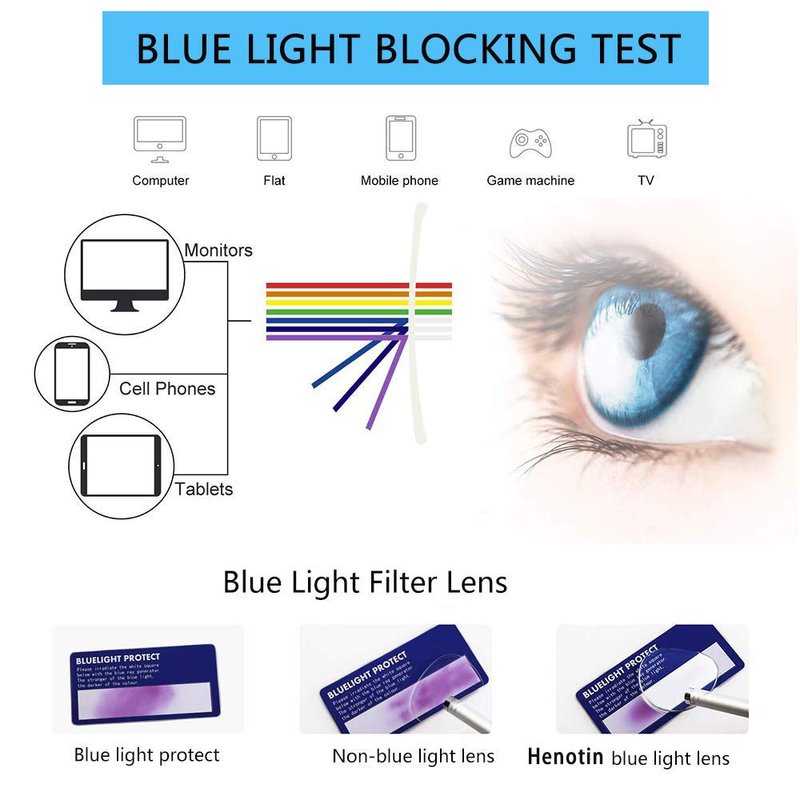 - REDUCE HARMFUL BLUE LIGHT - If you use your mobile phone/computer/TV/Read for a long time, you will feel Poor sleep/Dry eyes/Eye congestion/Blurred vision/Photophobia, Blue light is hurting you, you need a pair of Henotin anti-blue light glasses to protect your eyes from these troubles.