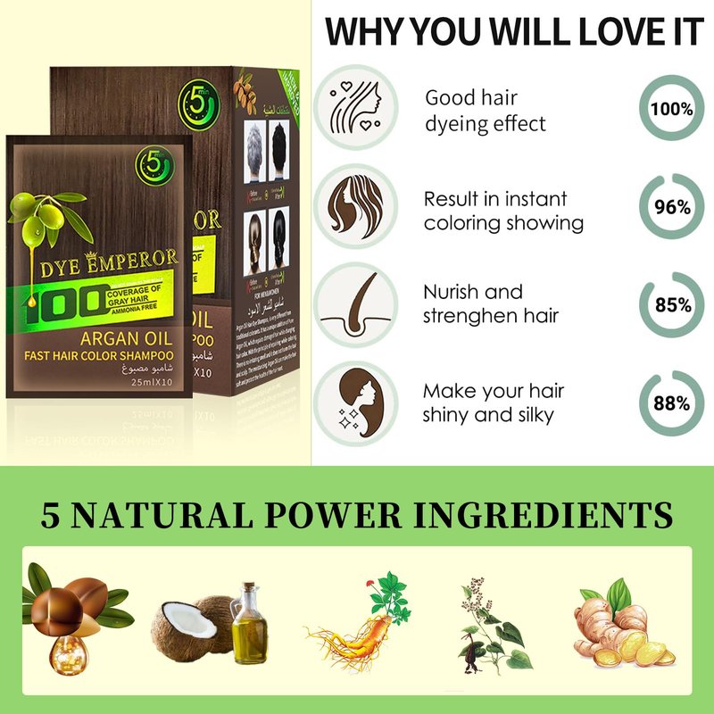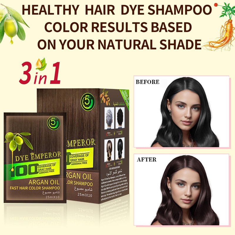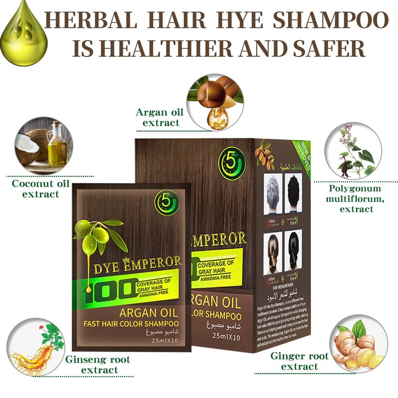 Herbal Hair Dye Shampoo - Ammonia Free | Brown Black Hair Color Shampoo |Color Hair In Minutes - 3-in-1 Bubble Hair Color For Men&women| 10-Bag/Box