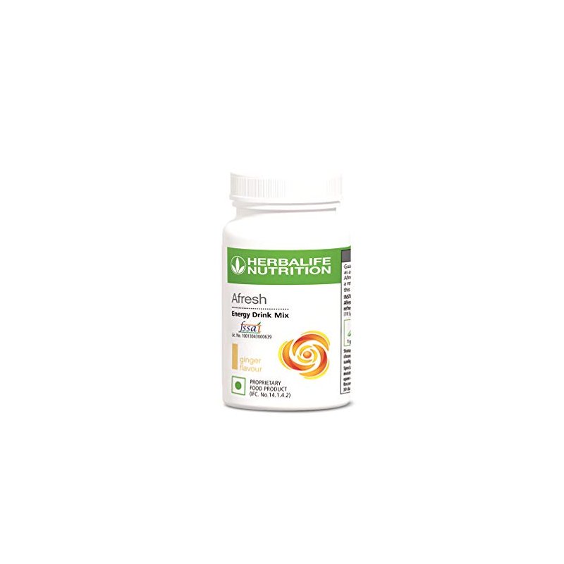 Afresh energy drink mix contains Orange Pekoe extract, green tea extract and natural caffeine powder. Caffeine helps you feel energized, supports alertness. Enjoy as a refreshing beverage at any time of the day Herbalife Afresh Energy Drink Mix - 50 g Overview Available in Elaichi flavor and enjoy this drink mix hot or cold and also rich in antioxidants Key Benefits Enjoy this hot or cold any time anywhere Rich in antioxidants 0% sugar Maximize your energy Afresh is a 100 % Vegetarian,energy drink Mix Directions To make a cup of Afresh,simply mix 1/2 teaspoon(1g) of Afresh drink Mix in a Cup (200 ml) of hot or cold water,Alternately use Afresh to make a cool ,refreshing glass of iced guarana tea. Garnish with a twist of lime or a sprig of min Enjoy and get energized instantly As each serving is just 1/2 tsp/1g,this pack gives 50 servings Net Weight 50g. These products are not intended to diagnose, treat, cure or prevent any disease, illnessor pain. In compliance with applicable Laws.