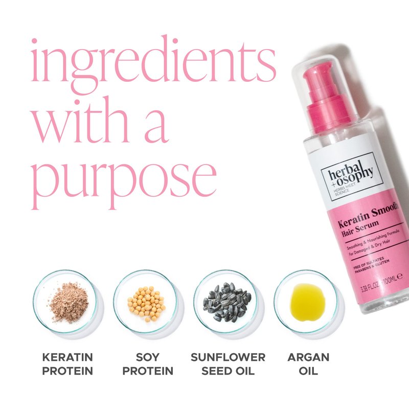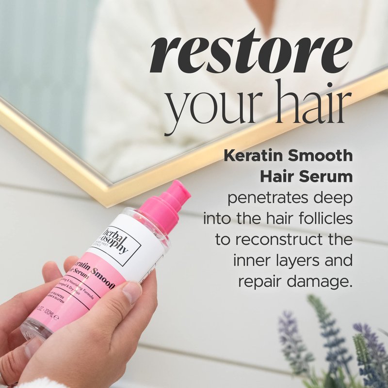 Herbalosophy Keratin Smooth Hair Serum – Smoothing & Nourishing Formula for Damaged & Dry Hair – Salon-Quality Haircare with Natural, Healthy Ingredients. Vegan. Sulfate & Paraben Free. 3.38oz