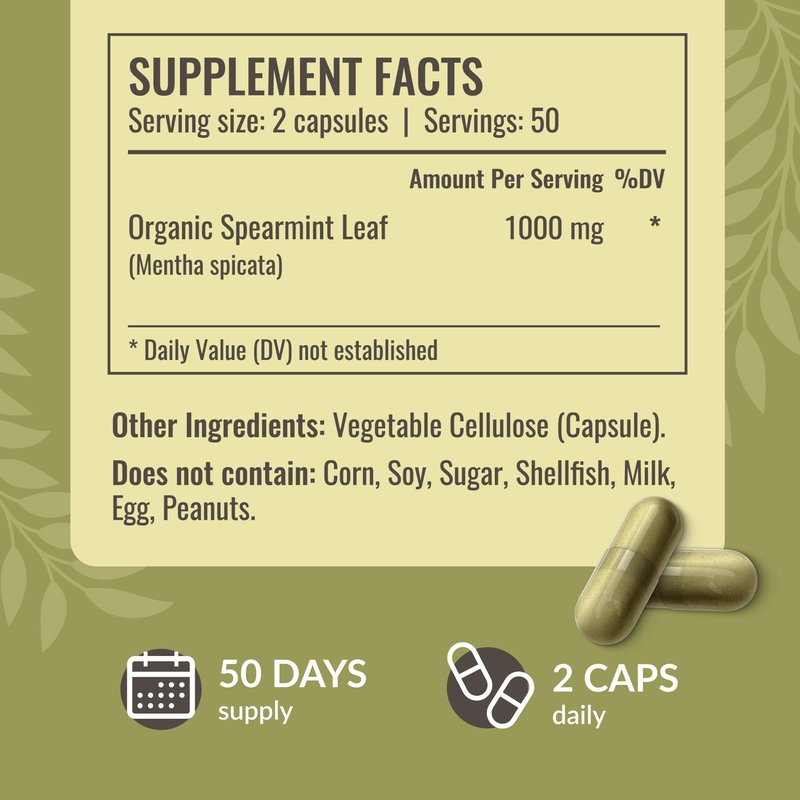 - For a Variety of Lifestyles: Our full spectrum Spearmint Leaf supplement is gluten-free, non-GMO, free from artificial colors, and any other fillers. Herbamama Spearmint capsules are crafted to complement any lifestyle.