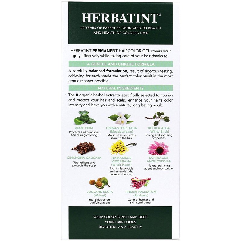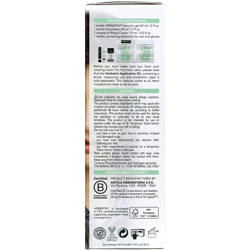 - MADE WITH NATURE IN MIND - Made with gluten-free, non-GMO ingredients. An eco-friendly, gentle formula made without ammonia, resorcinol, parabens and is alcohol fragrance free. Herbatint is against animal testing and is suitable for vegans. Our packaging is made of totally recyclable uncoated paper. The bottles can be reclosed and used again, allowing you to use the only necessary product and keep the rest for later applications to avoid useless waste.