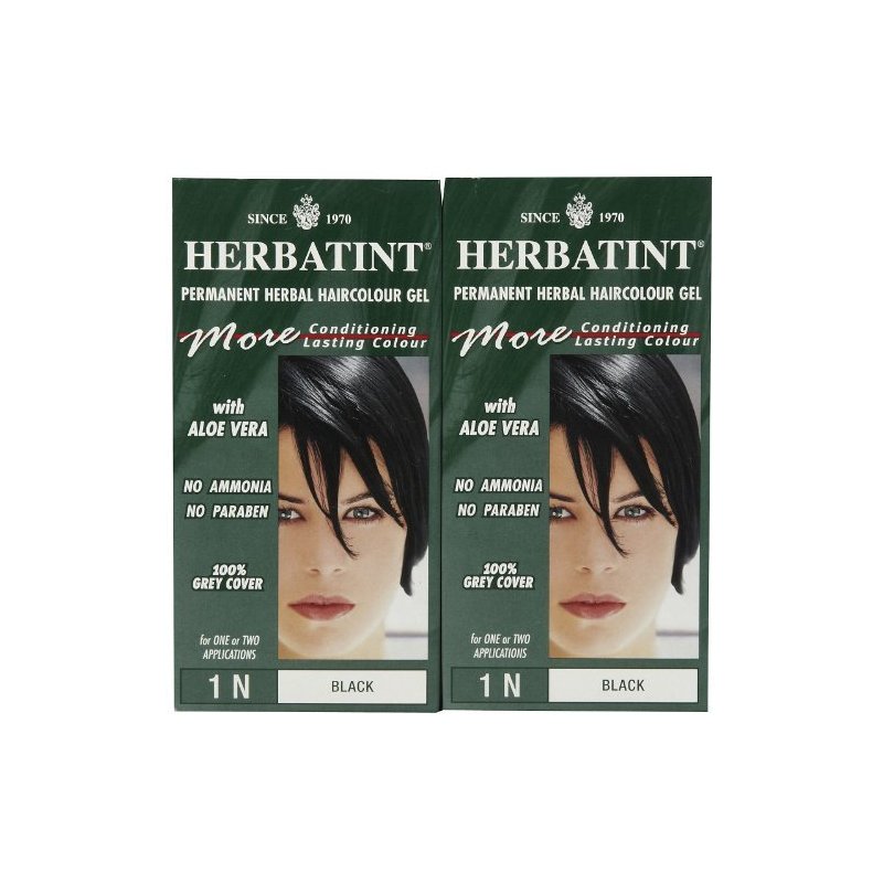 Herbatint Permanent Herbal Hair Color Gel, Black, 1N, 2 pk