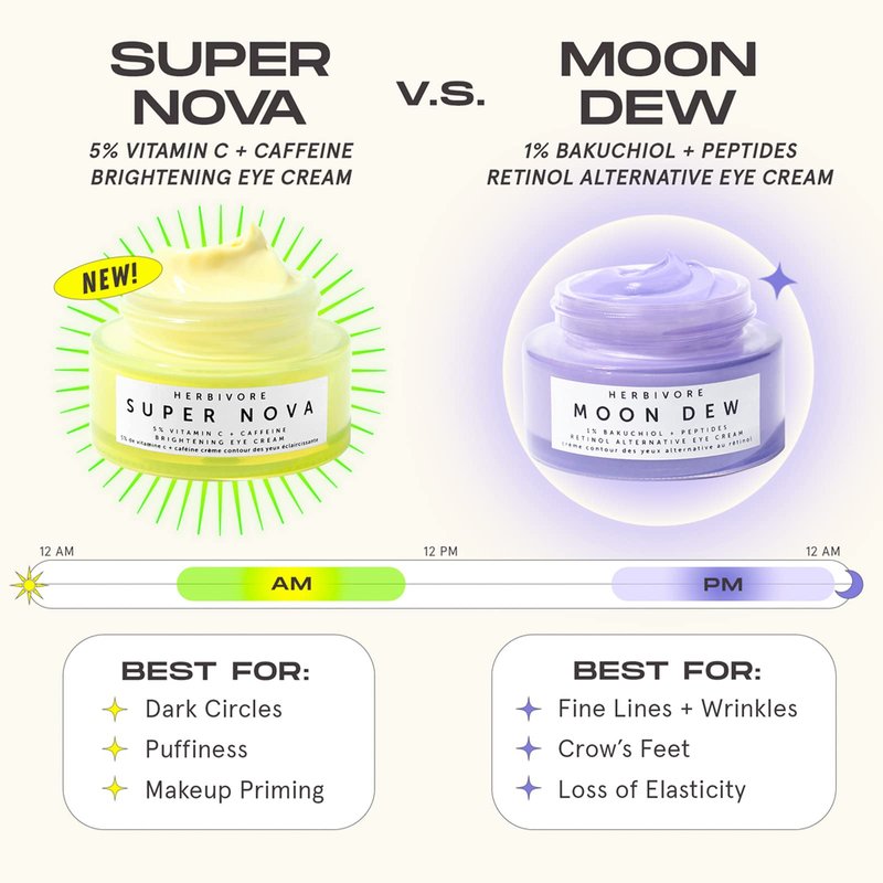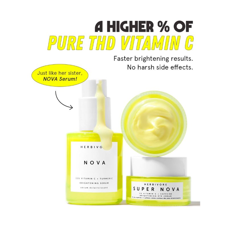 HERBIVORE Super Nova Eye Cream – 5% THD Vitamin C & Caffeine, Reduces Dark Circles & Puffiness, Brightens Eyes, Plant-based, Vegan, Cruelty-free, 15mL / 0.5 oz