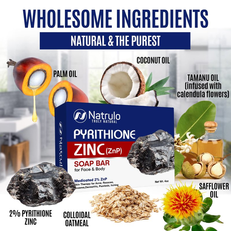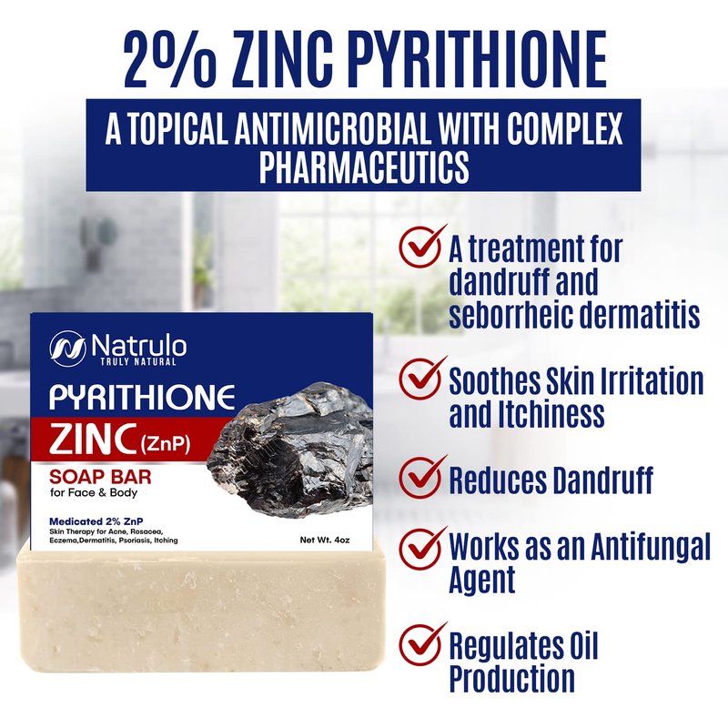 - 2% PYRITHIONE ZINC BAR SKIN SOAP: Found to possess cleansing and beneficial properties, zinc pyrithione is a high-grade synthesized ingredient proven to benefit the skin with its unique natural qualities.