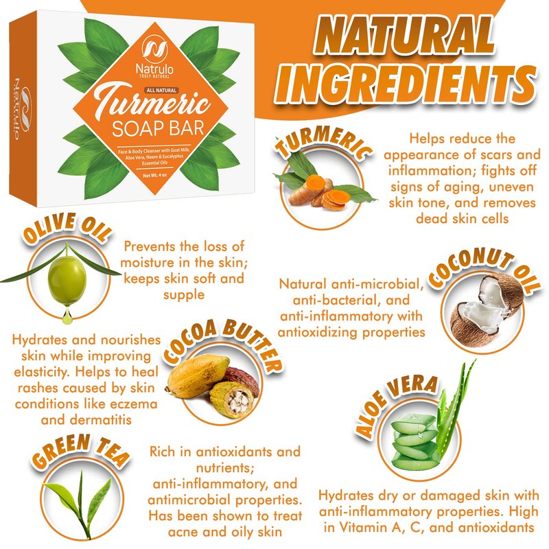 - Crafted in the USA, our turmeric soap bar is a premium skin brightening soap that goes beyond cleansing—it's a dual-action turmeric face wash and body cleanser, delivering a healthy, even tone for smooth, glowing skin.
