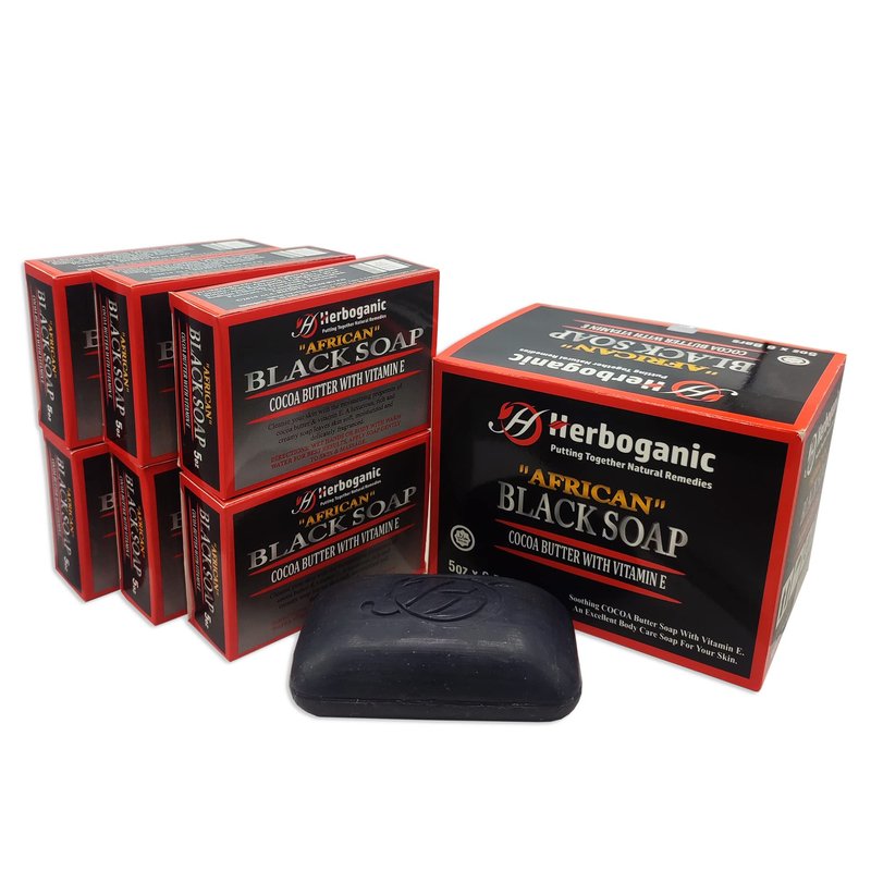 HERBOGANIC Black Soap with Cocoa Butter and Vitamin E | Natural Bar Soap for Face and Body | Relaxing and Nourishing | Gentle for Men and Women | 5 Oz (Pack of 6)…
