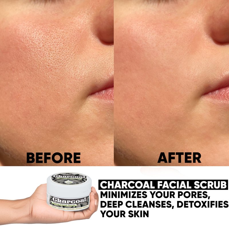 - Decrease Blackheads & Detoxifies: Our skin is exposed to different types of environmental factors & is constantly fights to survive against pollution, dirt & chemicals. An activated charcoal face scrubber for women & men helps detox and remove the toxic trash from your skin. So cleaner pores mean fewer blackheads.