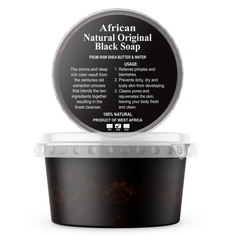 HERBOGANIC Raw African Black Soap Paste 16 oz - 100% pure natural Product of Ghana with benefits of Shea Butter - black soap is great for acne, Eczema, blackheads, face, hair and body wash.