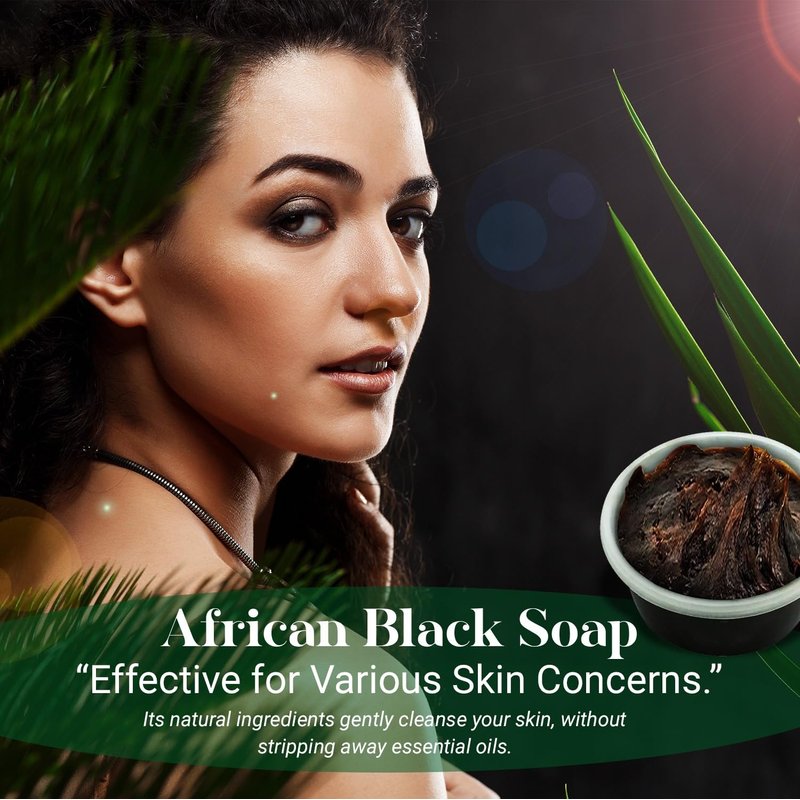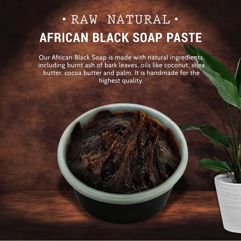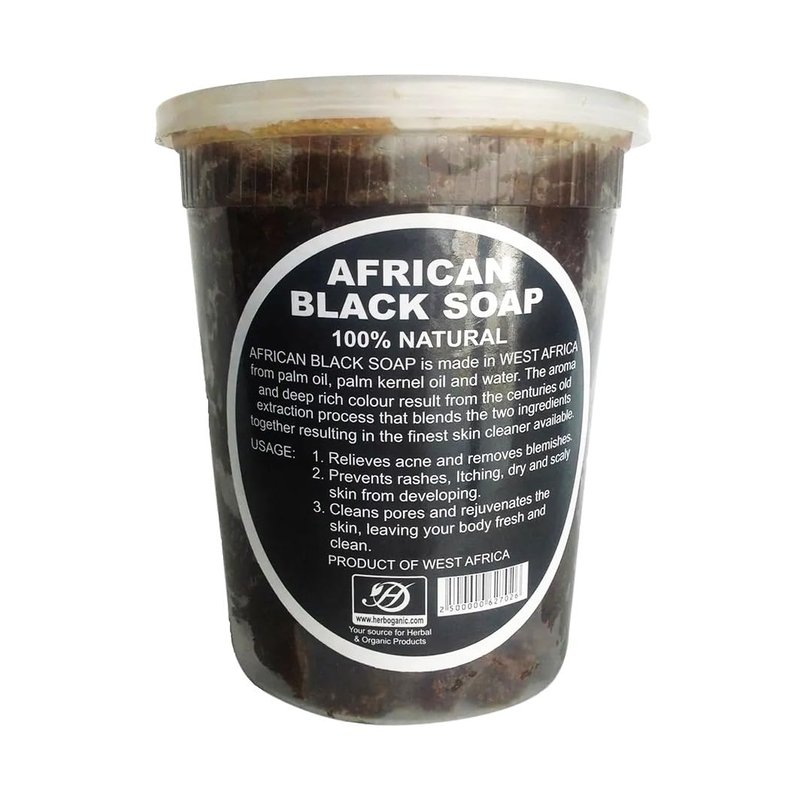 HERBOGANIC Raw African Black Soap Paste - Natural Exfoliating Cleanser for Face and Body –with benefits of Moisturizing Shea Butter - Traditional African Black Soap paste Formula - (32 Oz.)