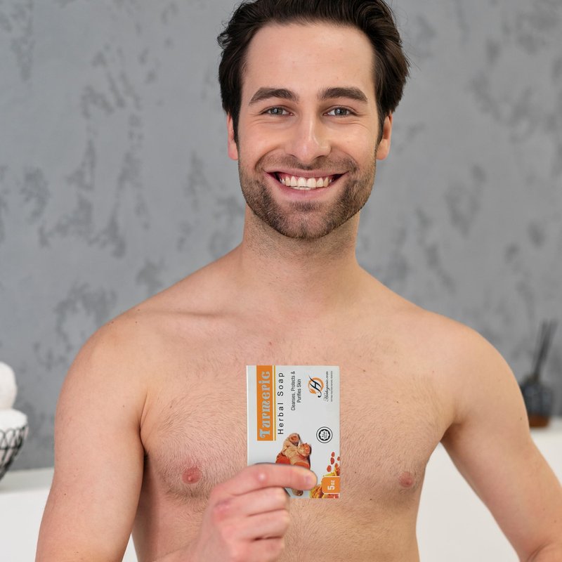 - Suitable for all skin types: Our Turmeric Herbal Soap is thoughtfully formulated to suit all skin types. Whether you have dry or oily skin, this soap is designed to provide the perfect balance of nourishment and hydration, helping your skin look and feel its best.