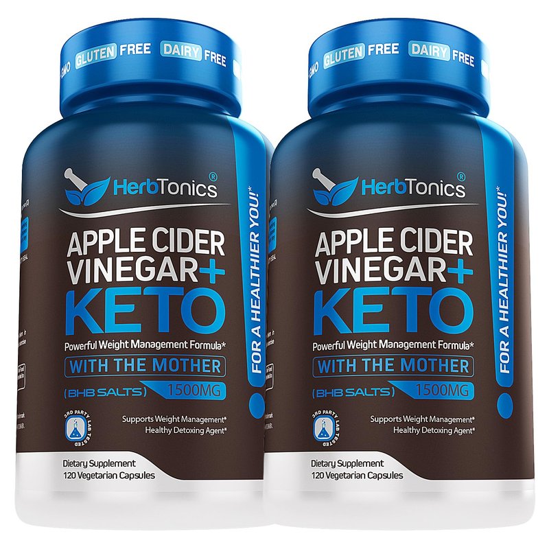 Herbtonics Apple Cider Vinegar Capsules with The Mother Plus Keto BHB - for Women & Men - Energy & Focus - 240 Vegan Pills