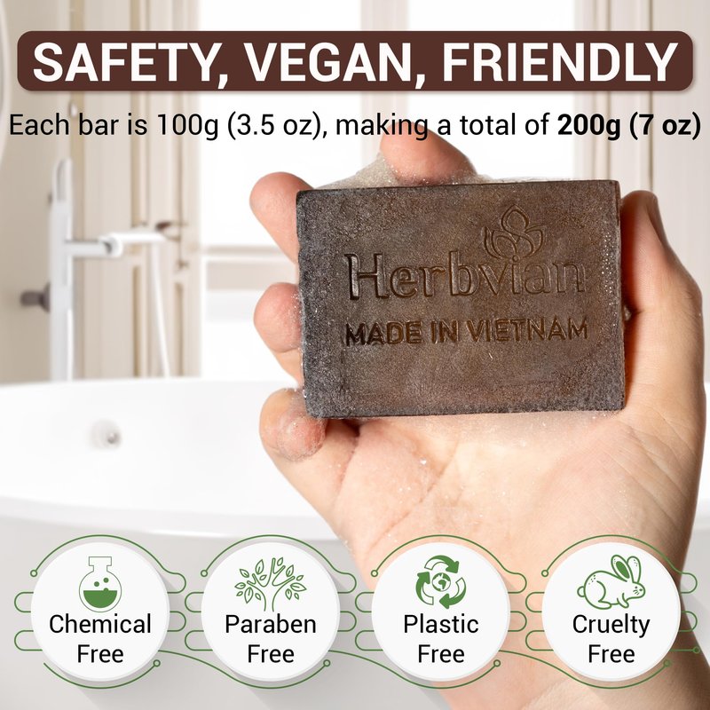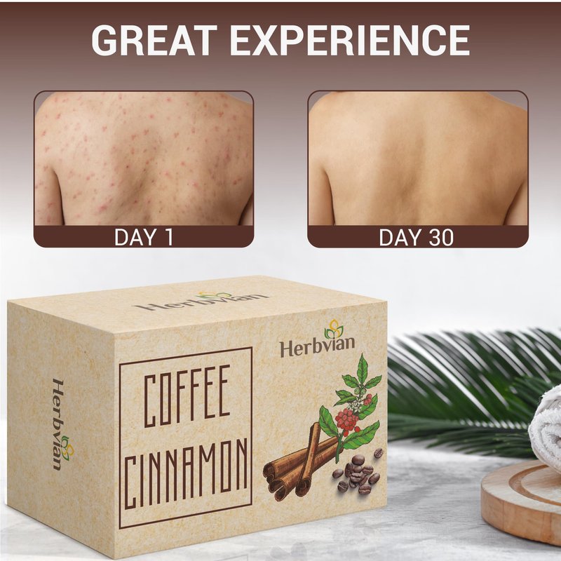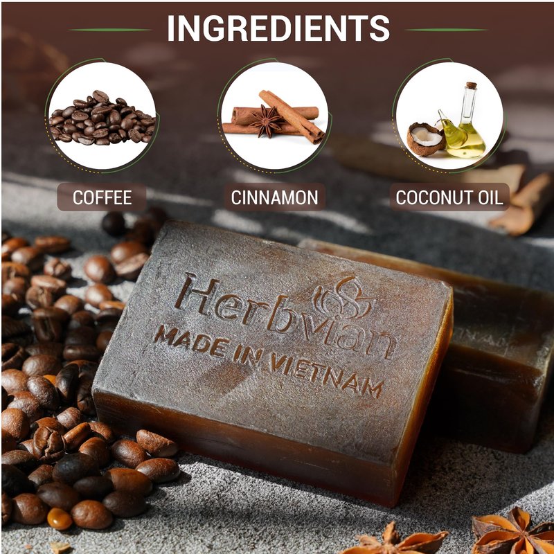 Herbvian 2 Pcs Coffee Cinnamon Exfoliating Soap Bars, Vietnamese Body and Face Soap, Scrub Soap Bar, Back Acne Body Soap, Cleaser Soap for Men, Women, Teen and All Skin Types