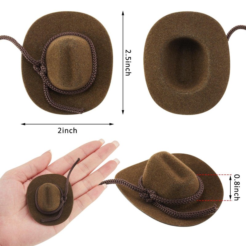 - Material and Size: adopting quality flocking material, mini cowgirl hat is safe and reliable, light but sturdy, will not easily break, which can be applied for a long time with confidence; Each measures about 6 x 5.04 x 2 cm/ 2.36 x 1.98 x 0.79 inch, compact and small