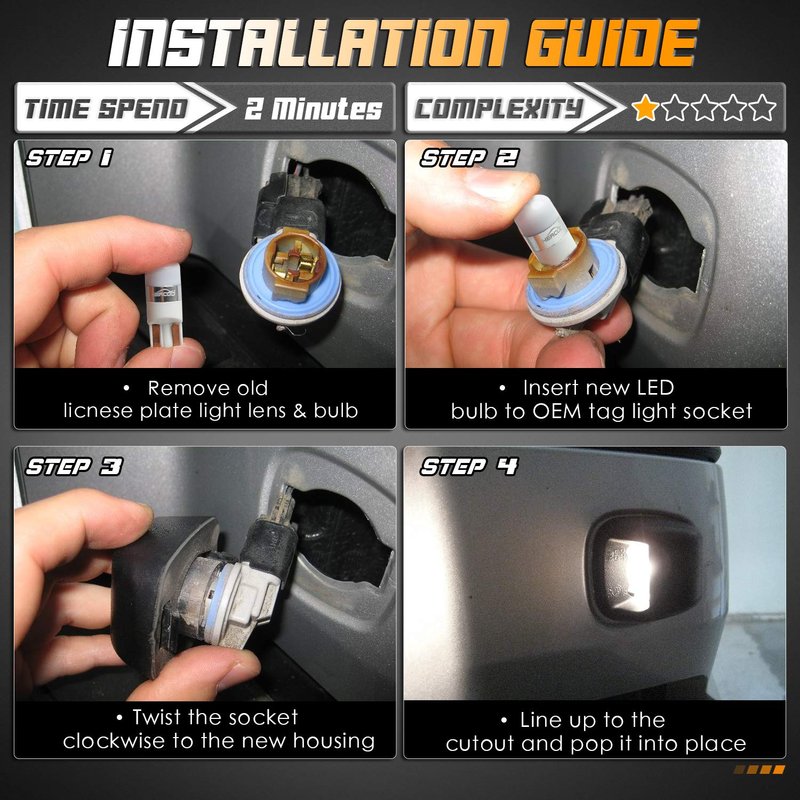 - [Package Includes & 1 Year Warranty:] Save time and money! Upgrade your pickup truck broken tag light with rear step bumper for 2 LED bulbs+2 black housing. Since order purchase date, feel free to send email if there's any issue before or after purchase, your case will be taken seriously regardless of warranty period.