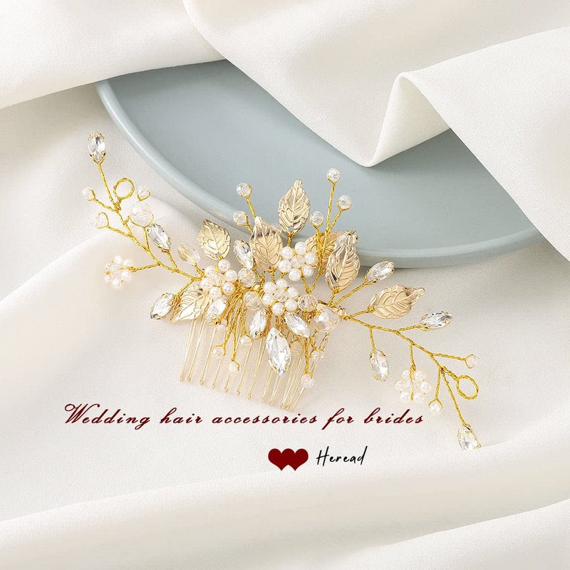 Heread Leaf Bride Wedding Hair Comb Crystal Bridal Hair Accessories Pearl Hair Piece for Women and Girls (C Gold)