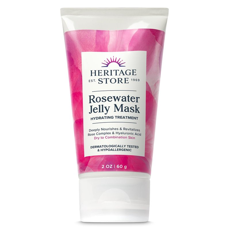 HERITAGE STORE Rosewater Jelly Facial Mask - Hydrating Treatment for Dry Combination Skin, Gel Face Mask Locks in Moisture w/Hyaluronic Acid and Rose Complex, Hypoallergenic, Vegan, Cruelty Free, 2oz