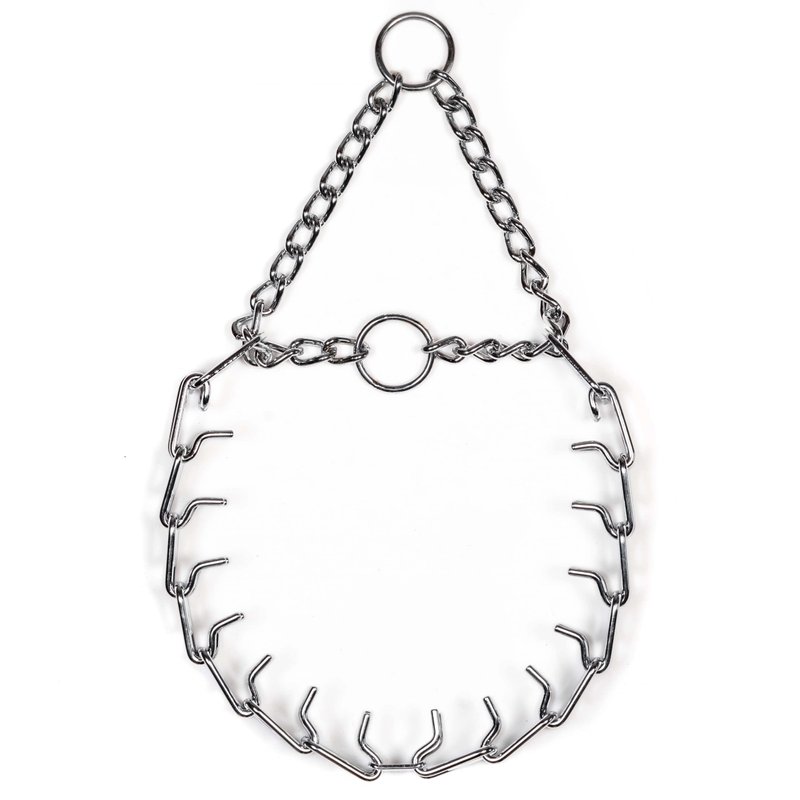 The Herm Sprenger Chrome Plated Prong Dog Collar is a specific brand and model of prong collar that is designed for dog training purposes. Herm Sprenger is a well-known manufacturer of dog training equipment, and their prong collars are known for their quality and durability.