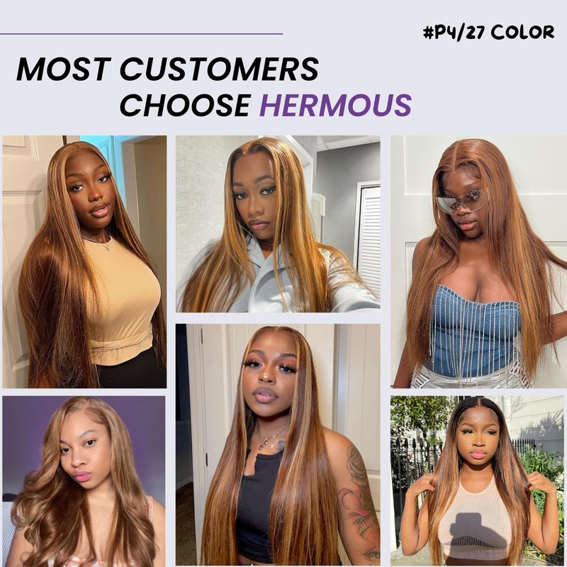 - Minimum Shed & Tangle Free: HERMOUS honey blonde bundles are tested at 1,000 brushing cycles with less than 0.01% shedding rate to better solve the shedding problem. The Upgraded-dense hair bundles with an extra 50% hair volume than others provide a more natural and realistic look