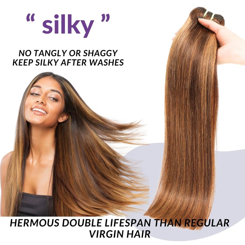 - Style: HERMOUS 12A Double Drawn Highlight Honey Blonde Straight 3 Bundles Human Hair