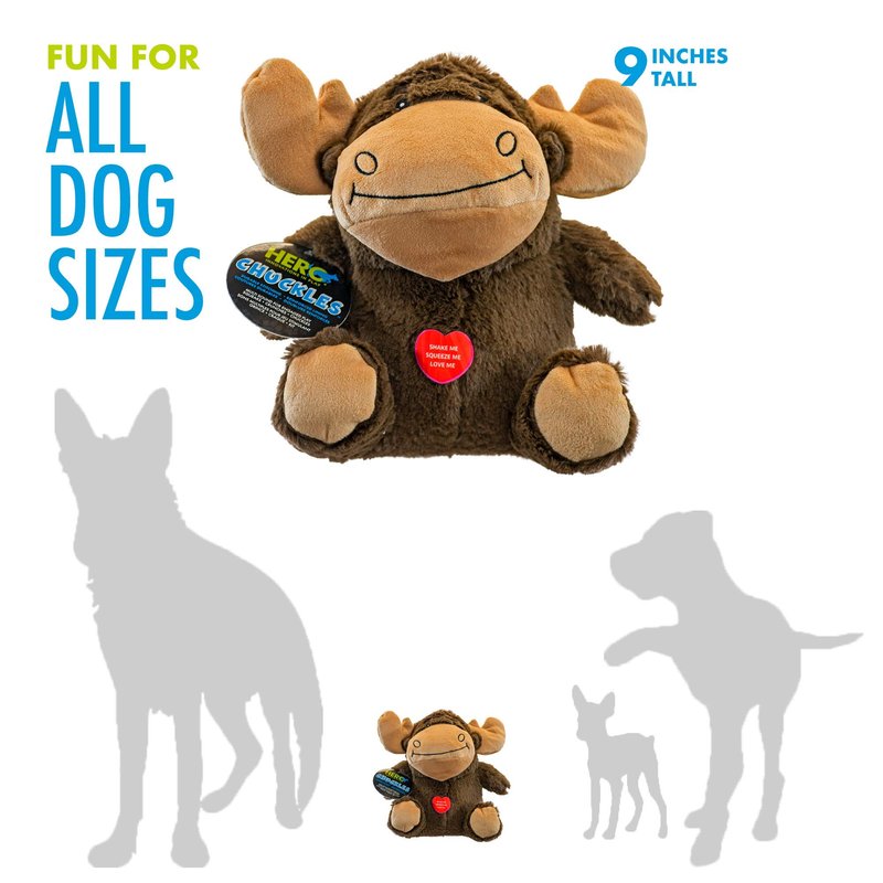 Hero Chuckles Moose, Plush Squeaky Dog Toy, Durable Stuffed Animal with 3 in 1 Squeaker