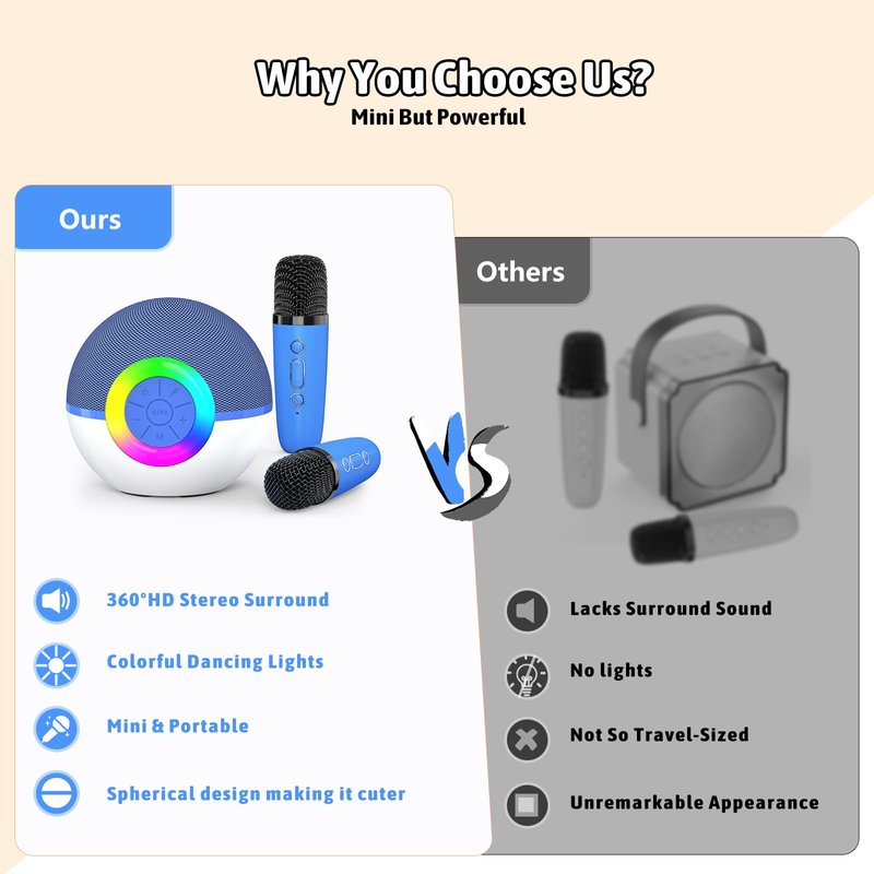 - Amazing Audio Quality: This mini karaoke machine delivers crystal-clear sound that will make you feel like you're on stage! High-performance audio eliminates annoying feedback and ensures your voice sounds its best. Plus, separate controls for vocals, echo, and volume let you fine-tune your sound for the perfect performance. Whether you're belting out your favorite tunes for karaoke night or using it as a portable speaker, this karaoke machine for kids is sure to impress