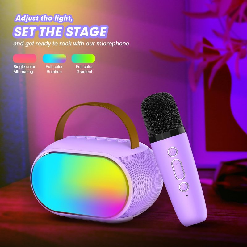 - 【Perfect Gifts for Kids】: This Mini Karaoke Machine for Kids Adults is practical. It can not only sing with a microphone but also play music as a speaker alone. Whether it's a Birthday party, family activities, or toys for girls, it is the right choice. Multi-function and cool lighting design make it the perfect toy for girls and Christmas birthday gift ideas for kids 3, 4, 5, 6, 7, 8, 9, 10, 11, 12 + year old girl teens toddler. With this Karaoke Machine, everywhere is the stage.