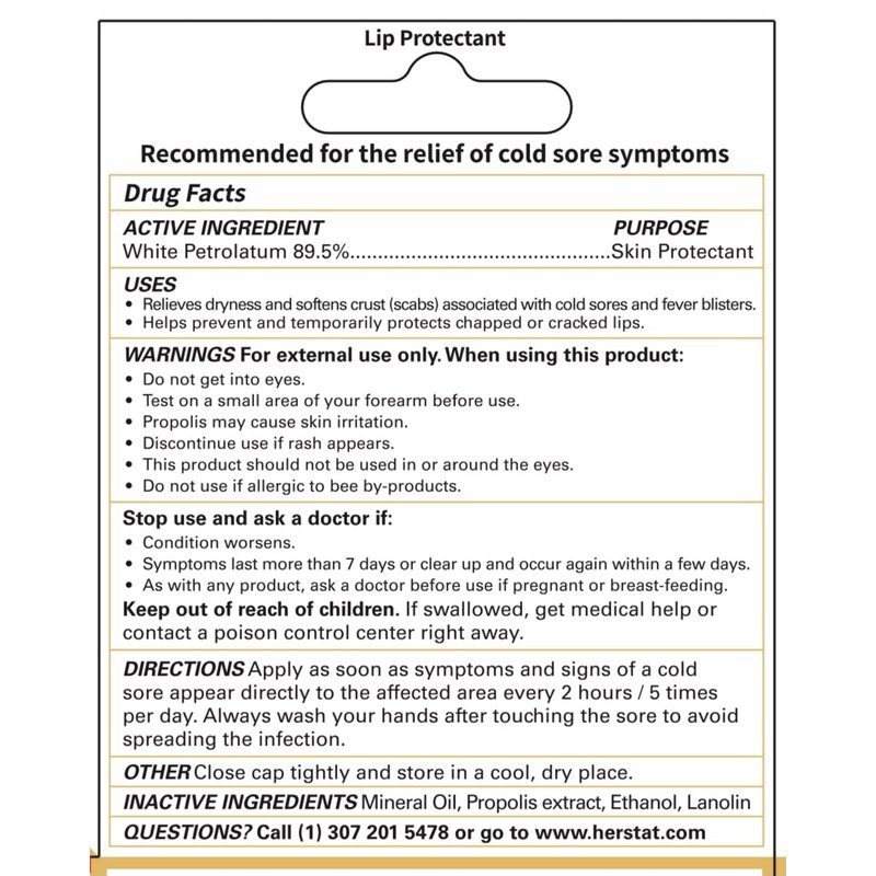 Herstat is a lip protectant which provides relief from the symptoms of cold sores such as dry, cracked and sore lips. The ingredients within Herstat will help to provide a protective barrier around the affected area which helps to retain moisture and helps prevent your lips from drying out.