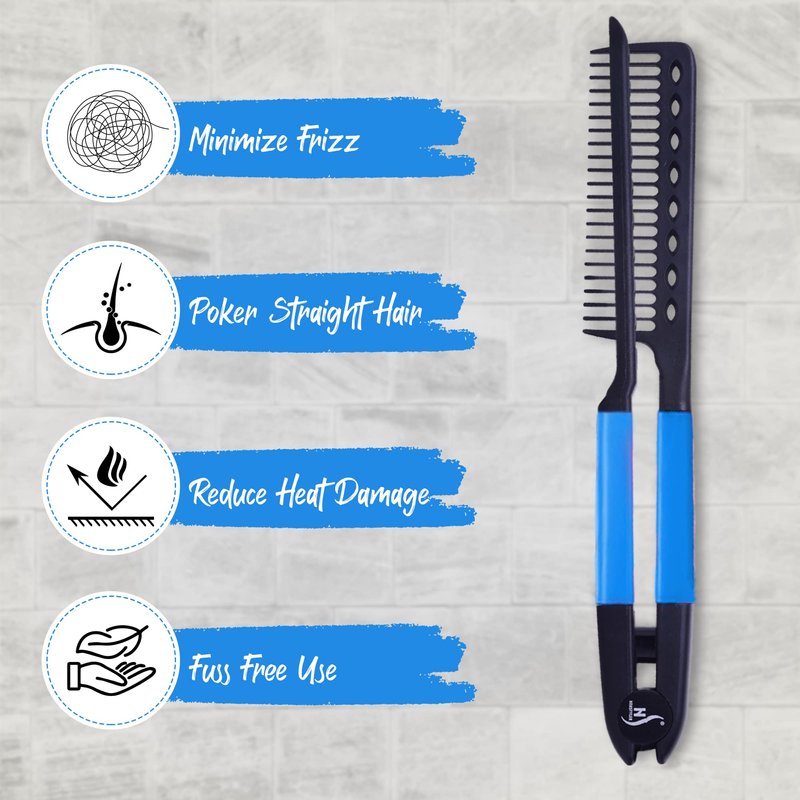 - PROTECTS HANDS - Keep your hands from singeing with the Straightening Comb. The trendy V shaped Comb helps hold hair in place when you use a flat iron while keeping your hands away from the hot plates.