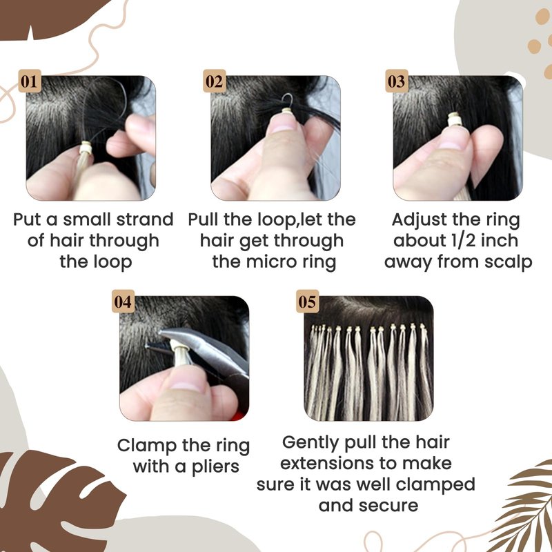 - Hair Care Tips for Longevity: Hetto Micro Loop Hair Extensions require special care to maintain their softness, shine, and manageability. Follow our recommended hair care tips to ensure longevity and preserve the quality of your extensions, allowing you to enjoy beautiful hair for an extended period. Additionally, tightening the hair with pliers after a week of wear significantly extends their lifespan.