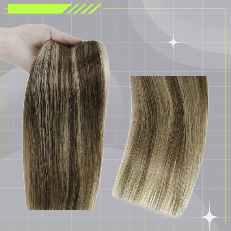 Hetto Long Ponytail Extension Human Hair #4/27 Dark Brown Highlighted Caramel Blonde Wrap Around Ponytail Human Hair 100g 20 Inch Clip in Ponytail Hair Extensions