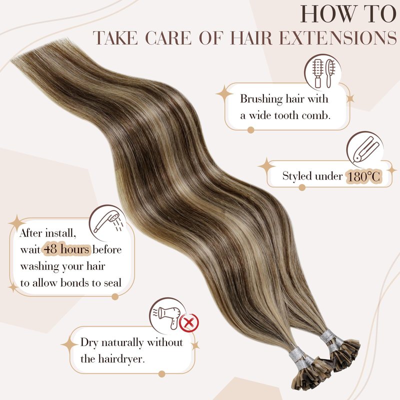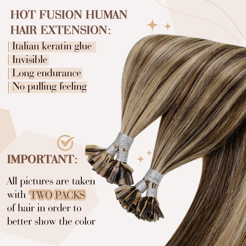 - ●●Quality Human Hair●● U-TIP hair extensions made of 100% real human hair. Smooth and soft with no tangles. With excellent Italian keratin, a natural protein won't damaging your own scalp. Professional application and removal are recommended.