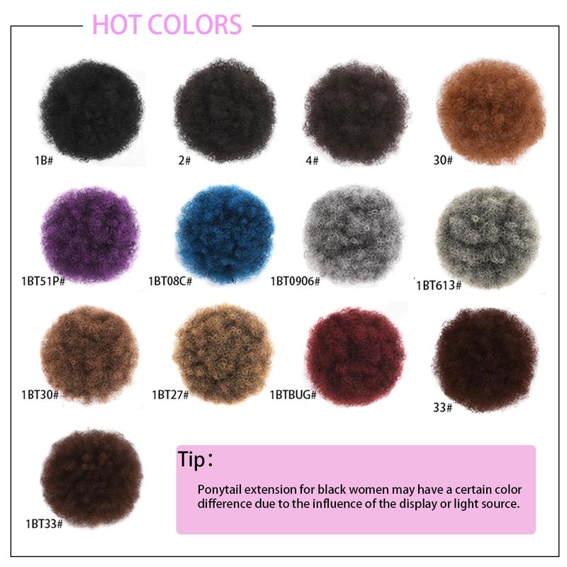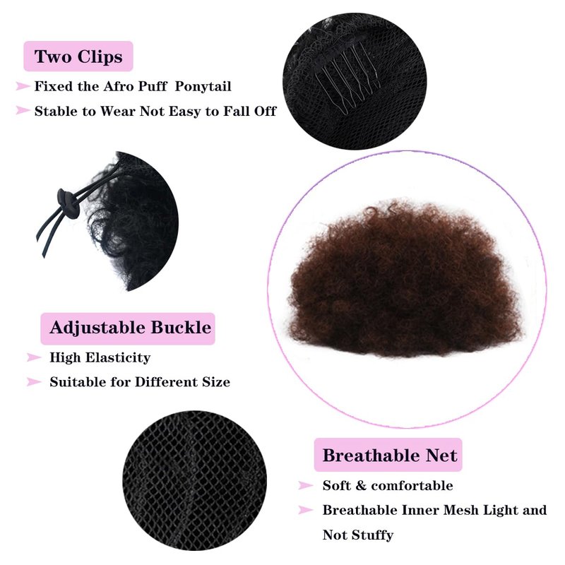- 【African Ponytail Hair Extension Material】Premium quality Afro puff drawstring ponytail are made of heat resistant synthetic fiber.Premium synthetic hair super soft ,full, smoothier,comfortable ,This ponytail not only can be used and keep the curve for a long time, But also looks more natural.