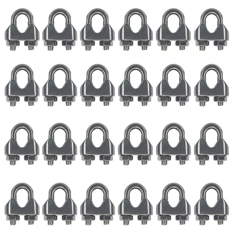 HEVER 24PCS 3/16" M4 Stainless Steel Wire Rope Cable Clip Clamp