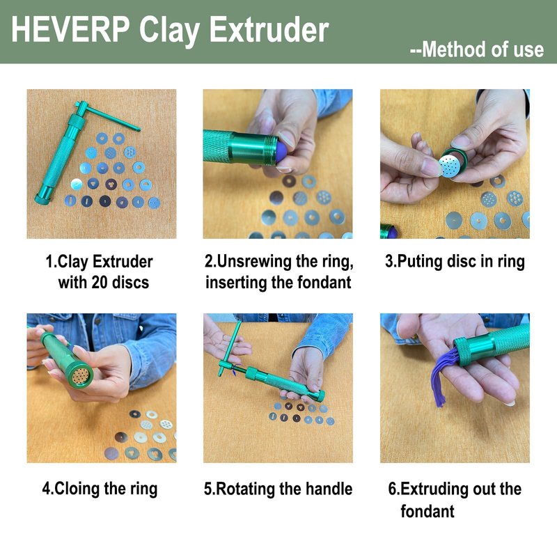 The item is a simple and practical clay gun extruder tool, which is made of stainless steel for safe to use. Equipped with 20 interchangeable discs for creating many different shapes, the clay gun extruder tool is perfect for many craft projects such as polymer clay, ceramic clay, pastry, bread dough, sugar paste and so on. With easy to disassemble and clean, it is really a wonderful clay gun set for choice.