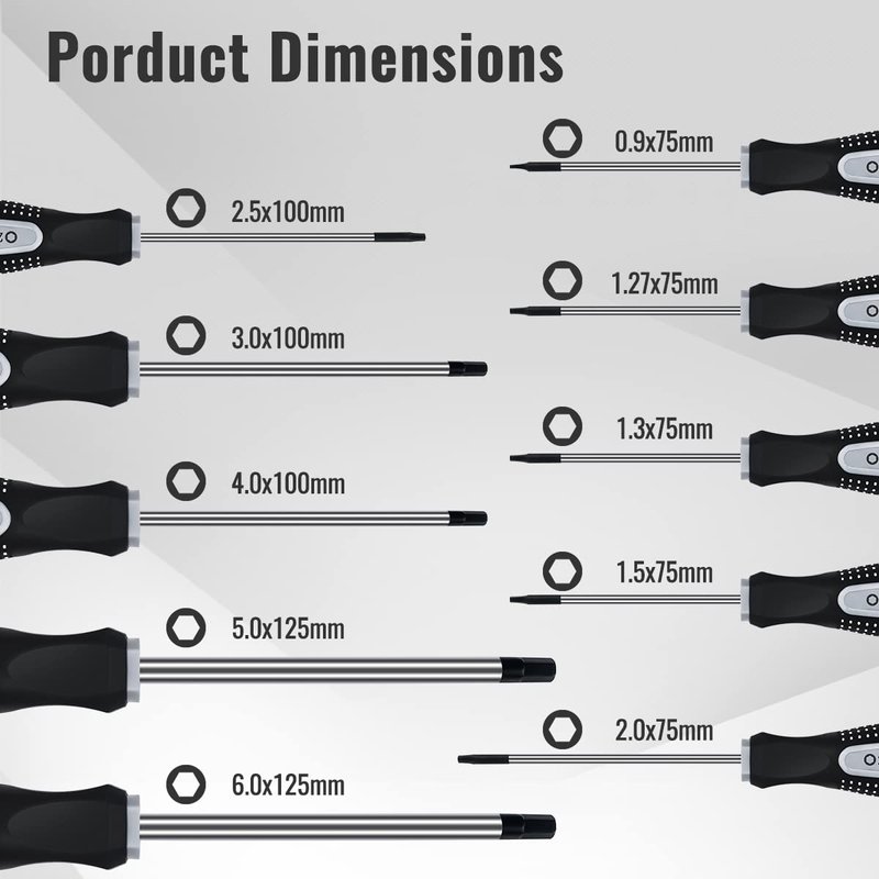 Hex Allen Wrench Screwdriver Set (10 Pack in Precision & Standard Metric Sizes 0.9mm 1.27mm 1.3mm 1.5mm 2.0mm 2.5mm 3.0mm, 4.0mm, 5.0mm, & 6mm) - Perfect for RC Cars, Quadcopters, & Helicopters