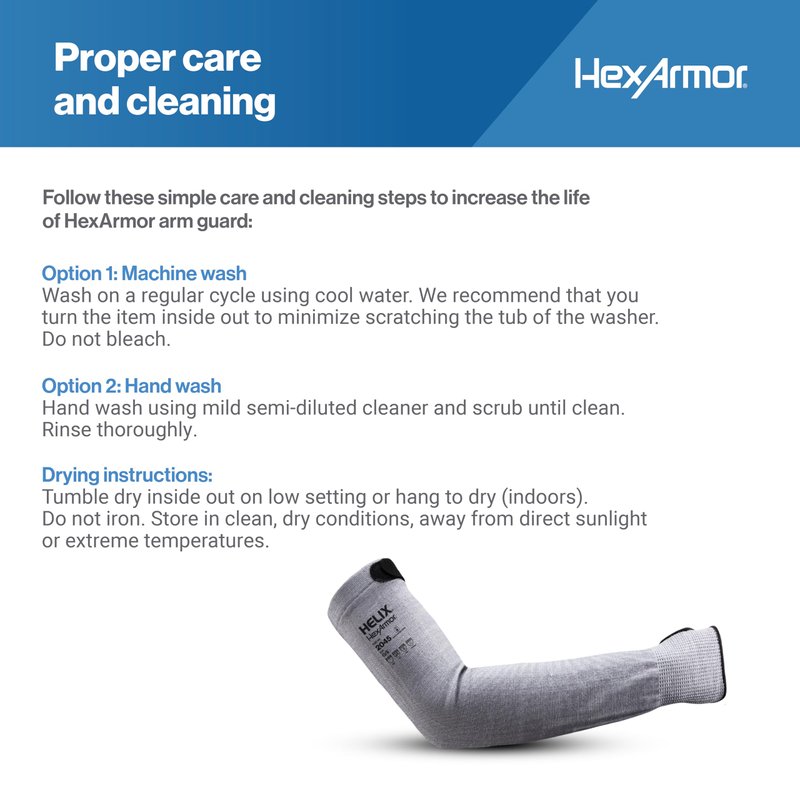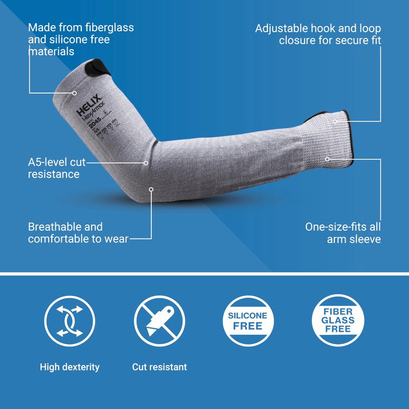 Featuring a one-size-fits-all design with adjustable thumb holes and hook-and-loop closures, the Helix 2045 arm sleeve ensures a snug, secure fit for people of all sizes, making it suitable for a variety of activities. With A5 level cut protection, the seamless knit sleeve delivers premium flexibility, breathability, and a lightweight feel while also being made with skin-friendly materials free of fiberglass and silicone. Designed for easy care, this machine-washable sleeve maintains its long-lasting protection and performance.