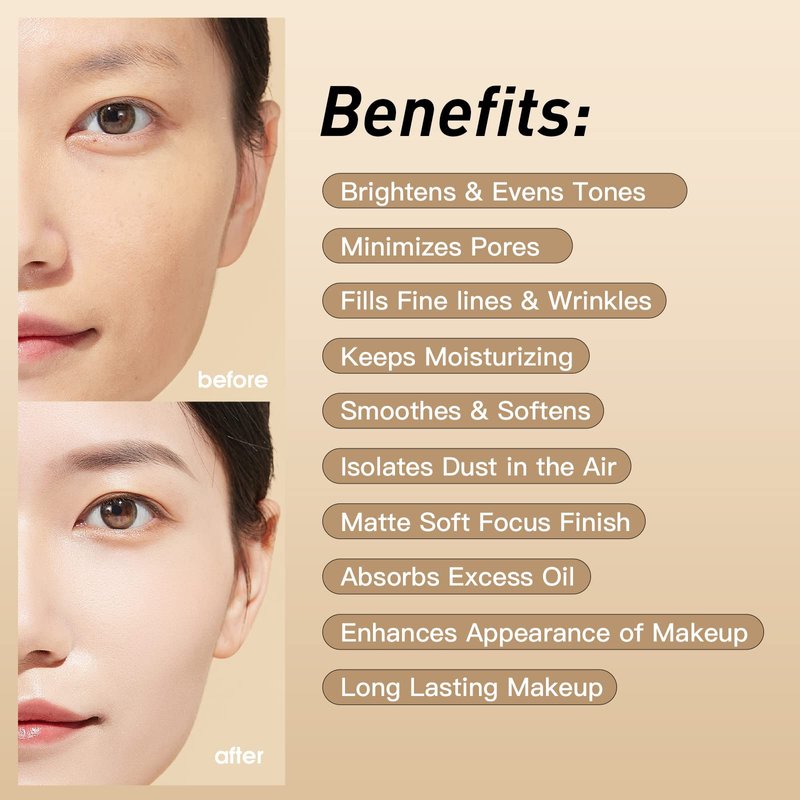 - Ideal for all skin types: our breathable makeup primer is weightless, non-greasy, and non-cakey. It hydrates the skin, locks the moisture, and absorbs excess grease so it helps to hold the foundation tightly all day long.