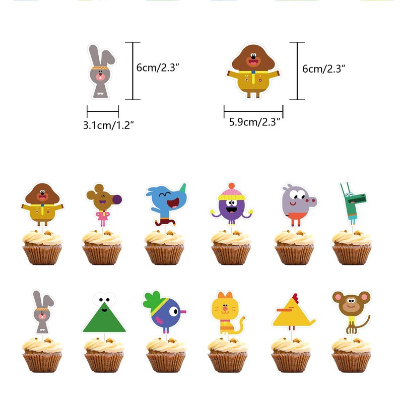 Package Includes: 1 pcs happy birthday banner 1 pcs cake topper 12 pcs cupcake topper 18 pcs latex balloons Perfect for hey dugee birthday party, hey dugee themed party, baby shower, boys party, girls party, game party, birthday party, decorations for the outdoor and indoor occasion, adding a festive atmosphere to any occasion.