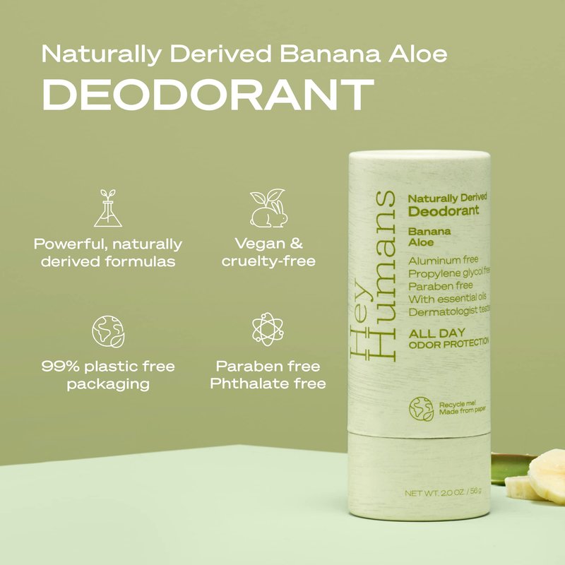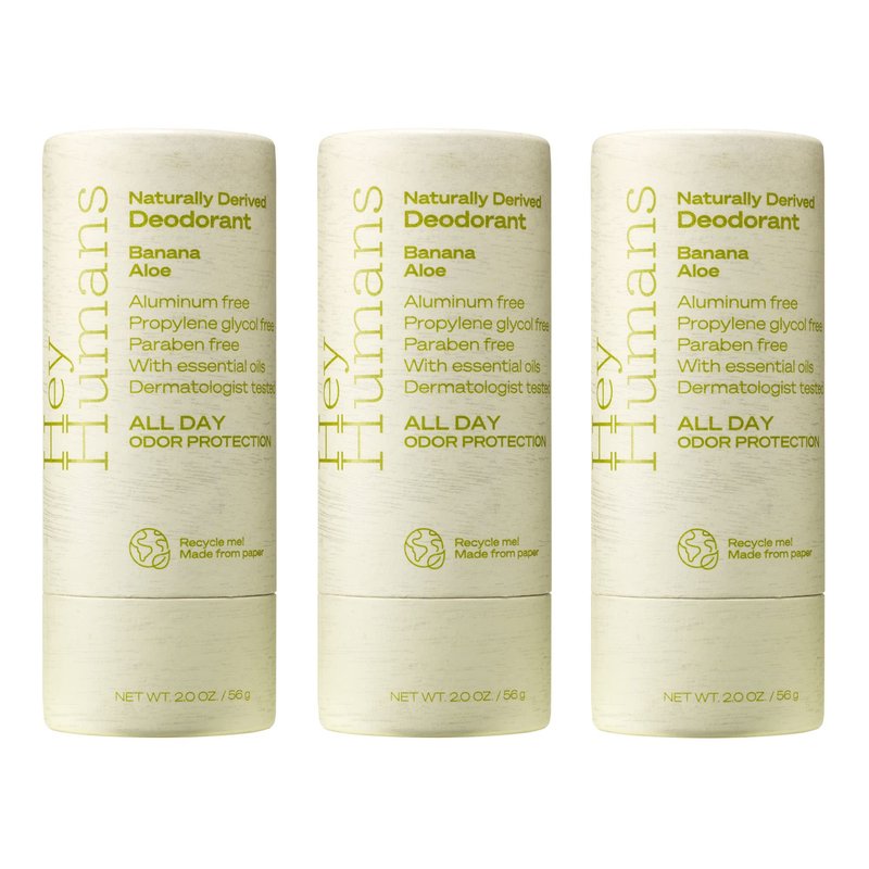 Hey Humans Banana Aloe Vegan, Aluminum Free Deodorant with Natural Ingredients, Coconut Oil & Shea Butter | All Day Odor Protection for Women & Men | 2 oz. - Pack of 3