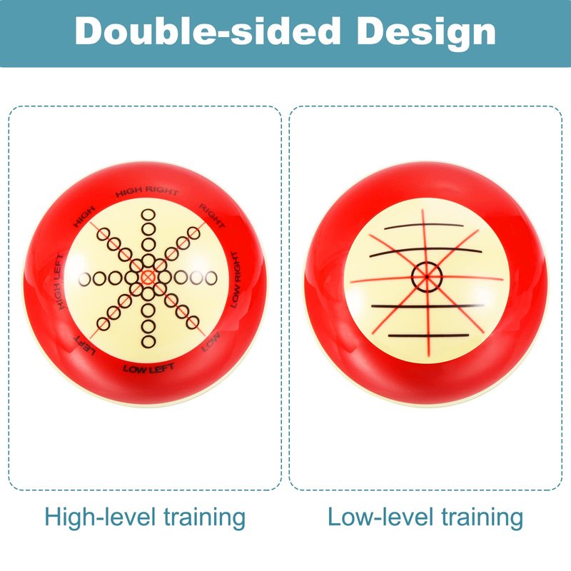 - [Advantage] The training master ball has double-side design,one side for low level practice,the other side for high level,cater to players of all levels,The pattern on the surface of the billiard ball is permanent and protected by a high quality resin film outlayer