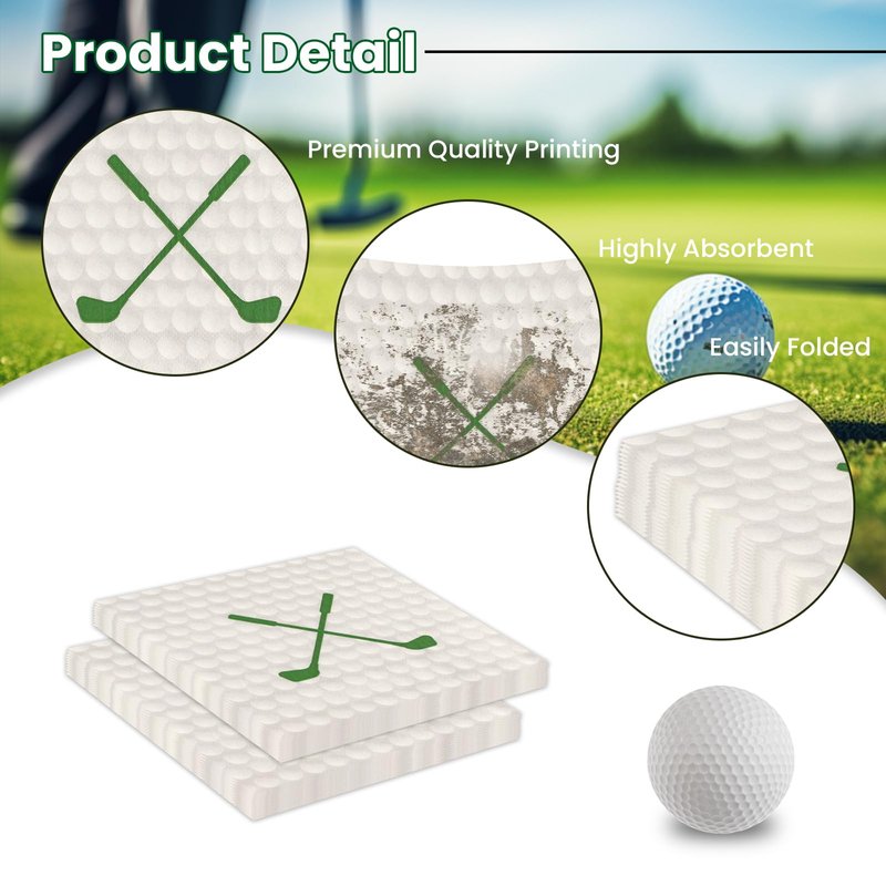 - 【PREMIUM QUALITY MATERIAL】: Our golf themed napkins are made from a thickened paper material with a two-ply construction that is both soft and durable. This carefully selected material means you can use them without worrying about them tearing easily, providing comfort and reliability in your party environment.