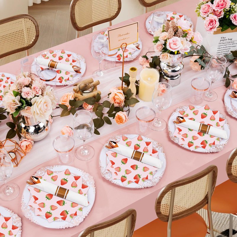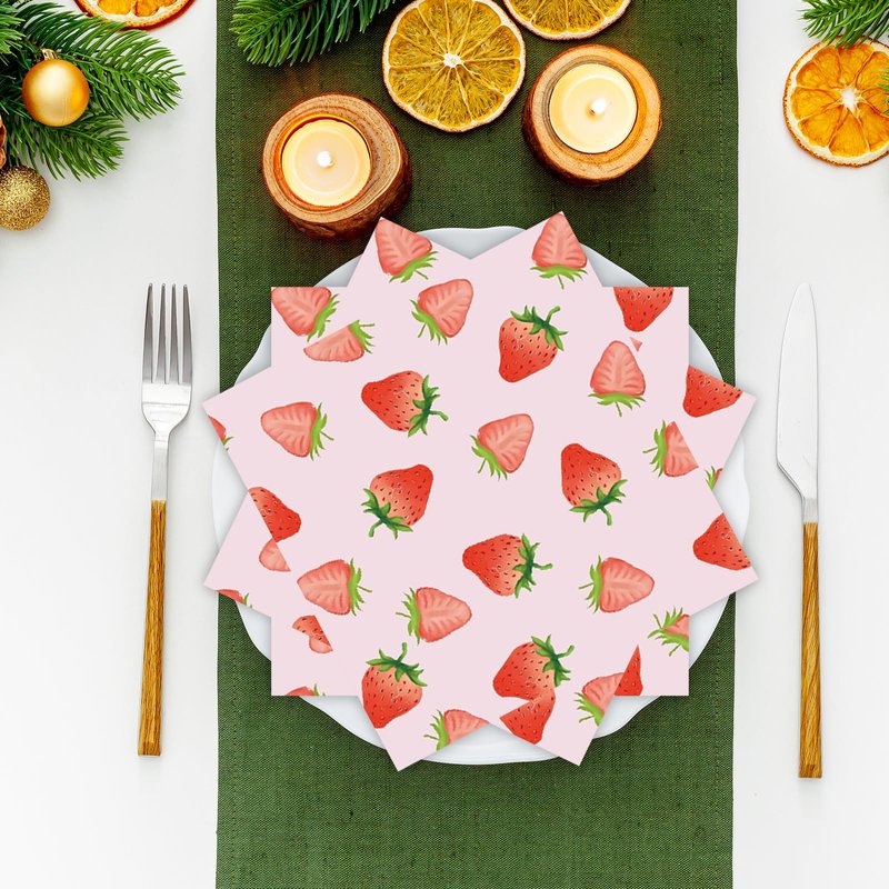 - 【PACKAGE INCLUDES】:You will receive a set of 50 paper napkins decorated with strawberry motifs, plenty of quantity for your strawberry themed or other themed party. A sufficient number of napkins will allow you to focus on the party fun and immerse yourself in the party.