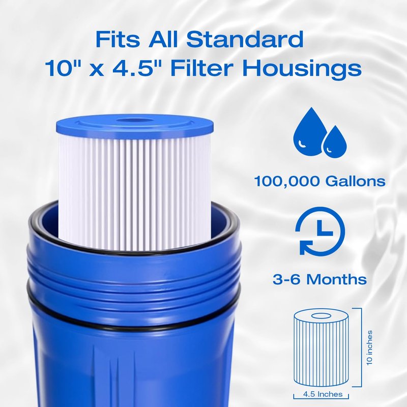 - Universal 10" x 4.5" Pleated Water Filter – Designed to fit 84637, WPX5BB97P, PC10, 355214-45, 355215-45, WP10BB97P, WP5BB97P,any standard whole house water filtration system, easy to install and replace.